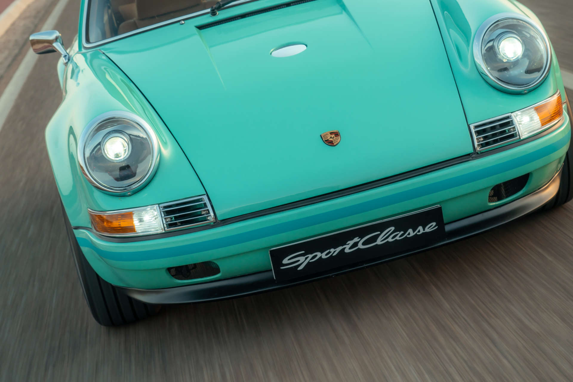 Die mintgrüne Version, für die der Kunde den bekannten Entenbürzel gewählt hat, fällt sofort ins Auge und wir machen eine Probefahrt. Wir kämpfen uns durch den Berufsverkehr ins Umland zu den Straßen, die für einen richtigen Test eines Porsche geeignet sind. Beim Beschleunigen auf der atemberaubenden Küstenstraße demonstriert Andre Nunes den Auspuffschalter, der den 3,6-Liter-EFi-Motor im Heck so herrlich nach Rennsport klingen lässt. Die Leistung des Motors in dieser Ausbaustufe liegt bei 320 PS.