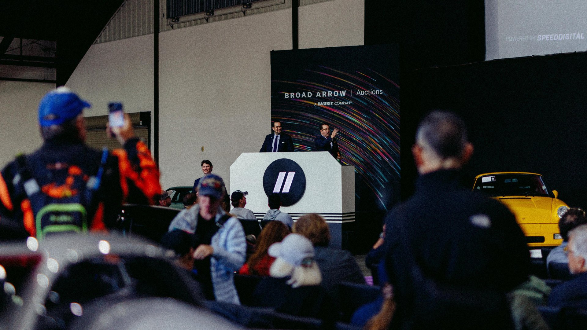 Eine besondere Attraktion war die zweite Auflage der Porsche-spezifischen Auktion von Broad Arrow, die eine breite Palette von Sammlerfahrzeugen bot – von seltenen luftgekühlten Straßen- und Rennwagen bis hin zu Exemplaren des begehrten Carrera GT und 918 Spyder. „Es gab zum zweiten Jahr in Folge ein beeindruckendes Line-up“, sagt Long. „Hier findet die Party innerhalb der Party statt. Nur Stehplätze und immer eine unglaubliche Energie.“