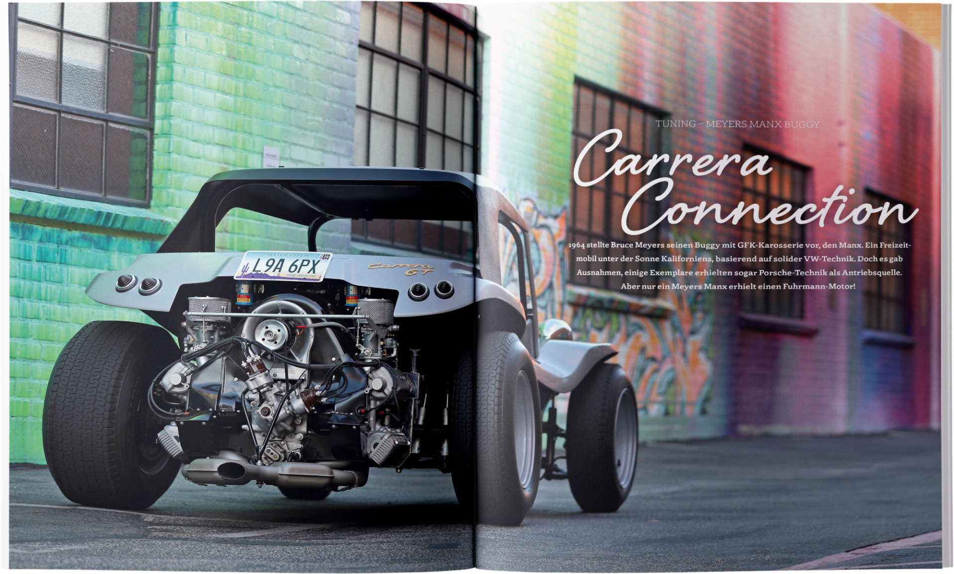 1964 stellte Bruce Meyers seinen Buggy mit GFK-Karosserie vor, den Manx. Ein Freizeitmobil unter der Sonne Kaliforniens, basierend auf solider VW-Technik. Doch es gab Ausnahmen, einige Exemplare erhielten sogar Porsche-Technik als Antriebsquelle. Aber nur ein Meyers Manx erhielt einen Fuhrmann-Motor!