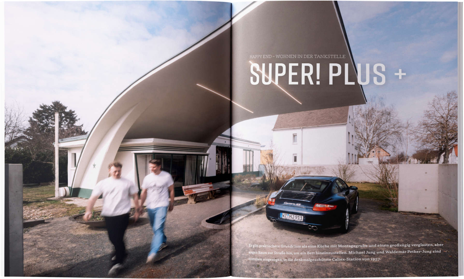 Es gibt praktischere Grundrisse als eine Küche mit Montagegrube und einen großzügig verglasten, aber engen Raum zur Straße hin, um ein Bett hineinzustellen. Michael Jung und Waldemar Petker-Jung sind trotzdem eingezogen, in die denkmalgeschützte Caltex-Station von 1957.