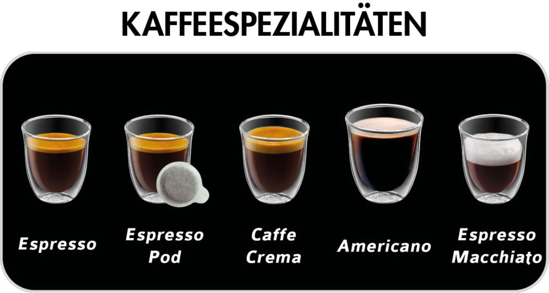Über das Menü wird die gewünschte Kaffeespezialität wie Espresso, Espresso Macchiato, Cappuccino, Latte Macchiato, Caffè Latte, Flat White, Café Crema, Americano oder Heiße Milch ganz einfach ausgewählt. Per Fingerdruck stellt das integrierte Kegelmahlwerk mit 11 Mahlgradeinstellungen die gewünschte Menge Kaffeepulver bereit. Für fortgeschrittene Baristas lässt sich diese Mahlgradeinstellung zusätzlich noch fein justieren und das Mahlwerk zur leichten Reinigung heraus nehmen.