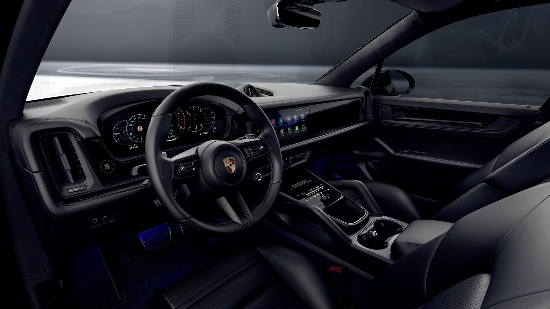 Die Cayenne Modelle zeichnen sich durch das SportDesign Bugteil, das Exterieurpaket, die Außenspiegel und den Porsche Schriftzug sowie die Modellbezeichnung am Heck in Schwarz (hochglanz) aus. Den Innenraum wertet hier das Interieur-Paket Aluminium gebürstet in Schwarz auf.