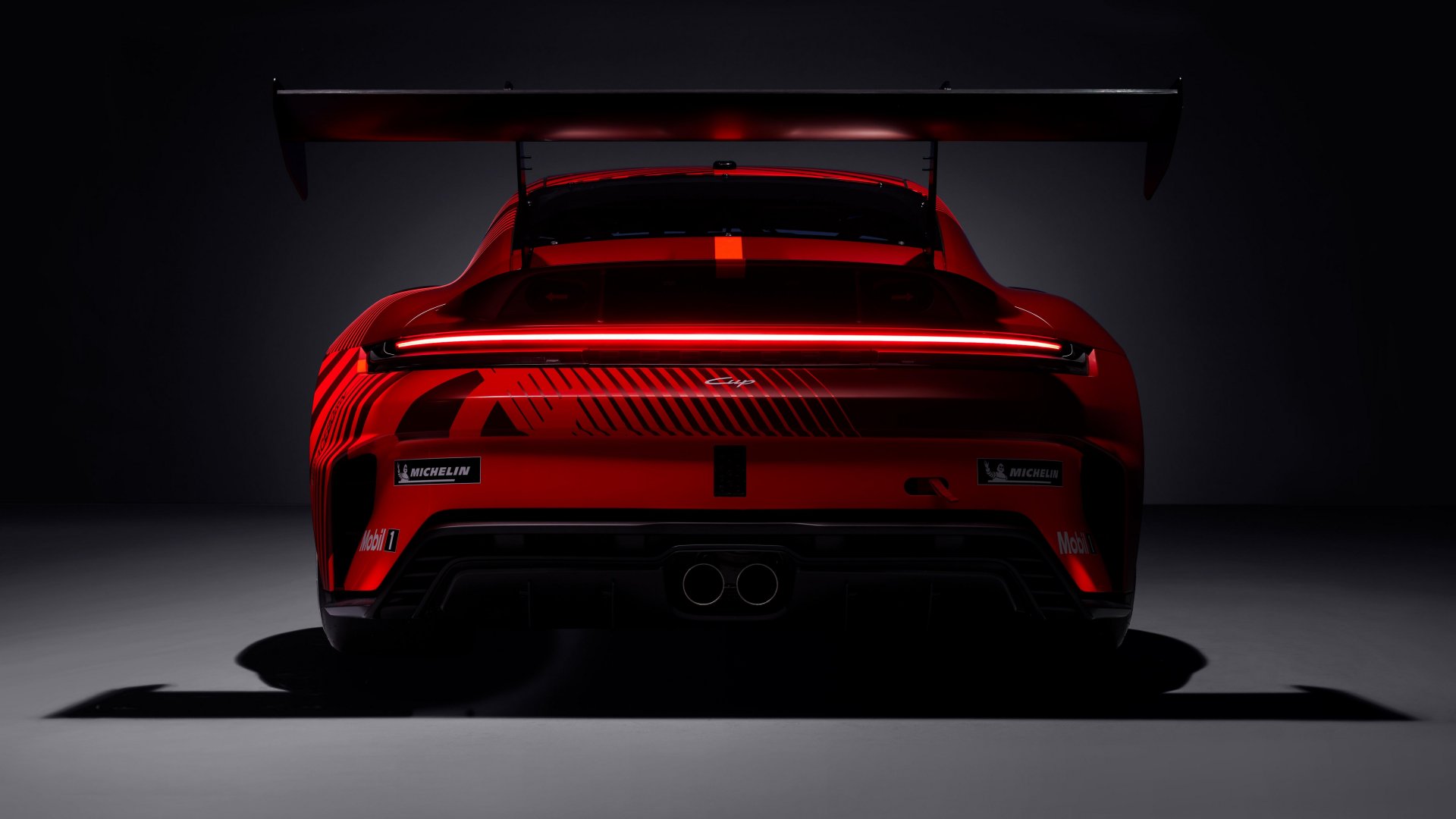 Das aggressiver gestaltete Heckteil des neuen 911 Cup stellt eine komplette Neuentwicklung dar. Der Schwanenhals-Heckflügel erhält eine modifizierte Anbindung zu den Flügelstützen. Dies vereinfacht die Positionseinstellung und das Handling. Die Motorraumabdeckung bekommt ein grundsätzlich modifiziertes Design. Ebenso wie nahezu alle Karosserie-Anbauteile inklusive der Türen bestehen sie aus einem recycelten Karbonfaser-Vlies in Kombination mit einem biobasierten Epoxydharz. Hierbei wird beispielsweise Verschnitt aus anderen Fertigungsprozessen zur Herstellung des Vlies verwendet – eine Maßnahme, die unter anderem die Ersatzteil-Preisstabilität positiv beeinflusst.